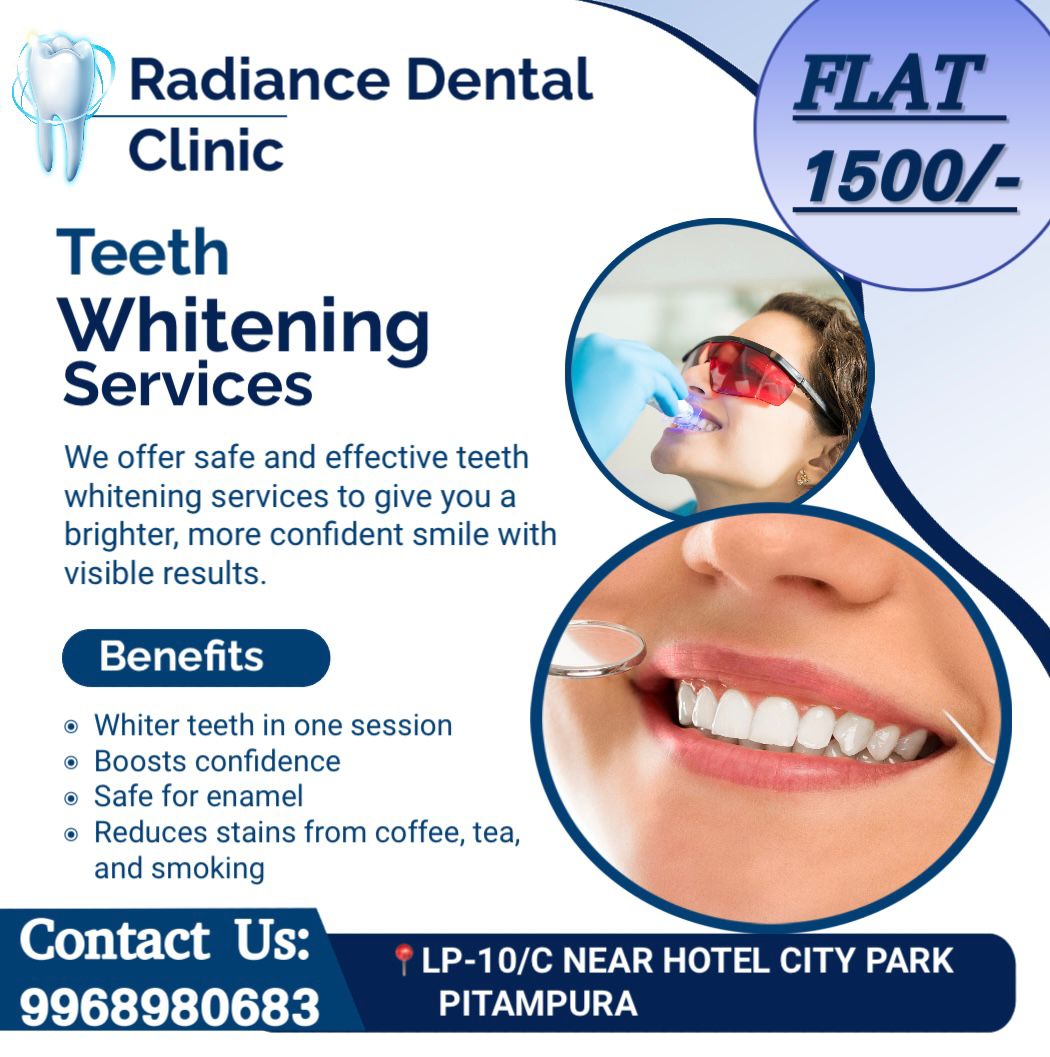 Radiance Dental Clinic And Cosmetic Centre LP-10C, near Hotel City Park, above Aggarwal Sweets Road, Mohan Nagar, Block WZ, , Pitam Pura, Delhi, New Delhi-110034 +918048052905 drpratibhajain27@gmail.com